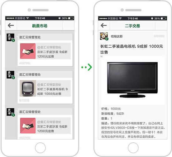 让原本模式的邻里关系变得熟悉起来,在社区公众号上可随意交流、交换物品。经过身份认证的社交关系更加值得信任